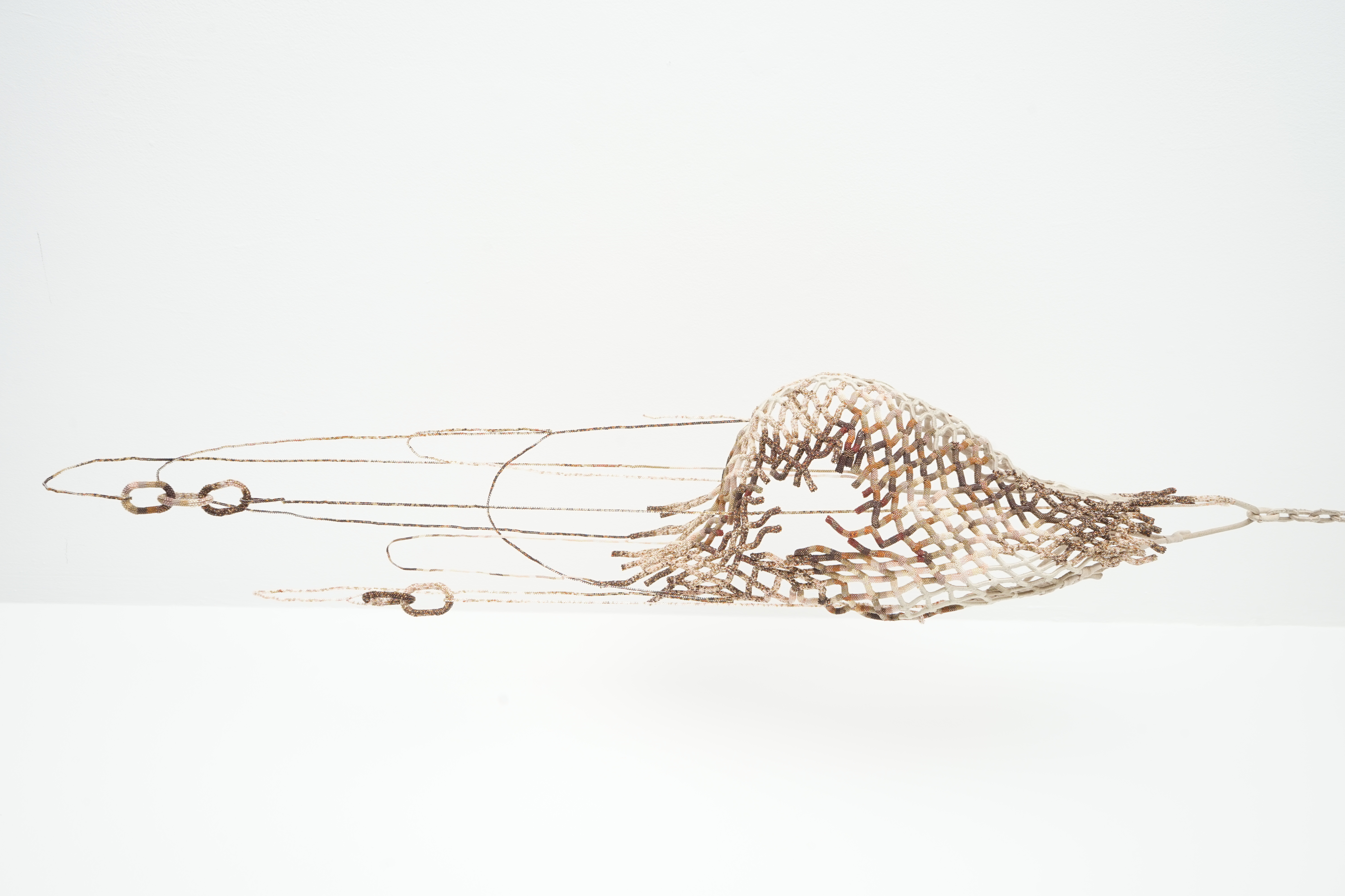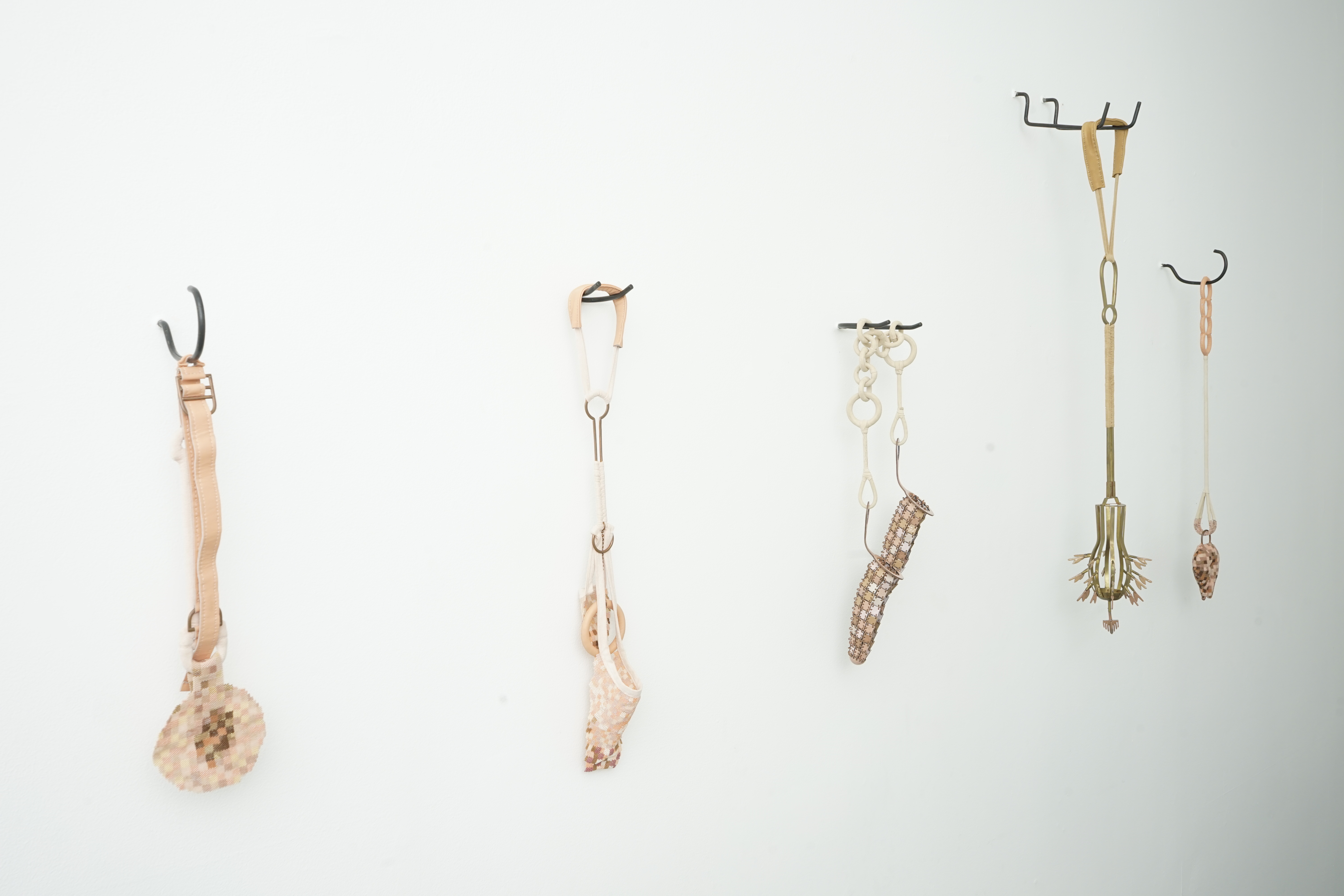 Juvana Soliven, Body Weaponized No. 8, glass enamel, copper, steel, leather, thread, 35 in x 2 in x 2 in, 2021Essex Flowers is pleased to present of the soft parts, a New York debut solo exhibition of Hawaii-based artist Juvana Soliven. This exhibition presents a years-long exploration of work that utilizes a pixelated censor motif as a visual language that speaks to themes of bodily autonomy, gender performance, and survival. of the soft parts’ title is an excerpt from Terri Kapsalis’ “Mastering the Female Pelvis: Race and Tools of Reproduction”, an essay which articulates the horror of gynecological practices suffered by enslaved Black women, the mass sterilization by the US of women and girls in Puerto Rico, the forced sterilization of incarcerated women, and coercive and “incentivized” contraceptive trials placed on poor women of color around the world by US and European governments. These are systems of control exercised against women under the guise of societal improvement and medical advancement that would contribute to the fulfillment of our duties in society. of the soft parts presents a years-long dedication to challenging those systems of control — offering a mirror against societal views on women, the trauma inflicted, and how far we have and haven’t come as a society.